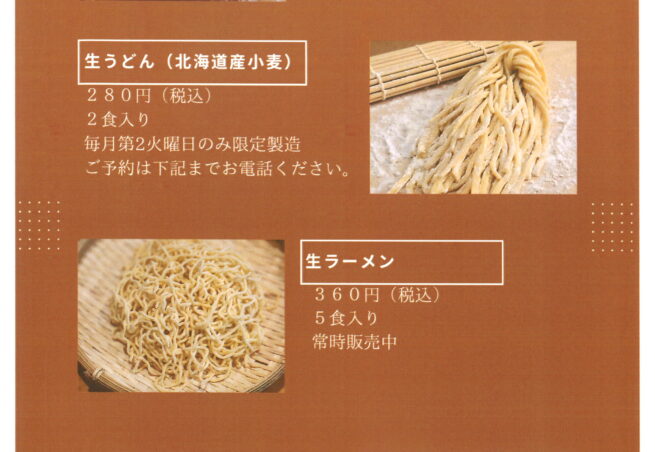 今月の生うどんの限定製造は4月7日(火)となりますので、ご希望の方は前日までにご予約をお願いします。